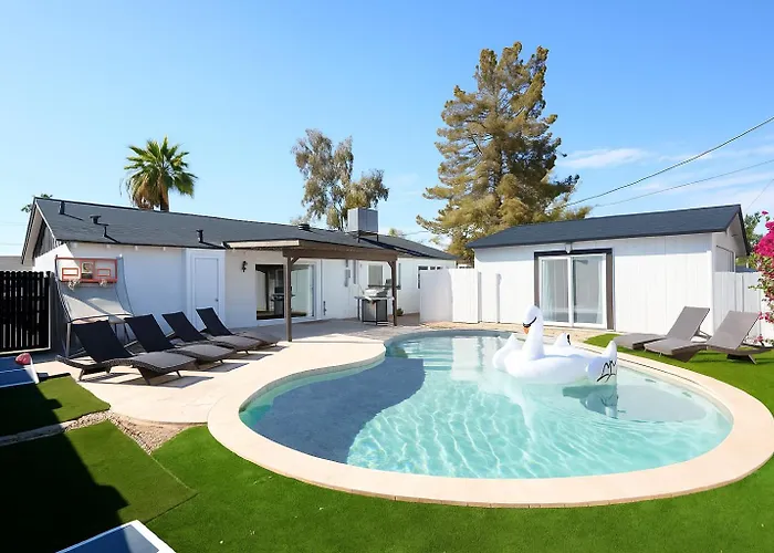 Questa casa vacanze si trova a 5 km dall'aeroporto Internazionale di Phoenix-Sky Harbor e a circa 10 minuti in auto da punti di interesse culturale come Hall of Flame Museum of Firefighting. A una distanza di 3 km da questa villa gli ospiti troveranno il Casino Arizona, mentre lo Zoo di Phoenix è a 2,1 km. La Villa Casa Con Casita - Private Pool - 8 Min To Old Town offre un facile accesso a meraviglie naturali come il Big Surf (2,2 km) e il Parco Jaycee (4 km).